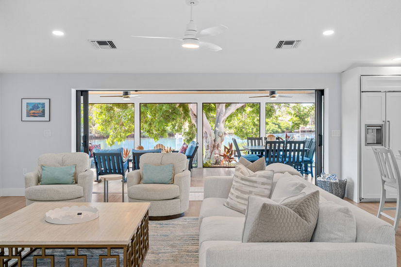 Pocket-glass doors slide open between the living area and lanai for a breeze