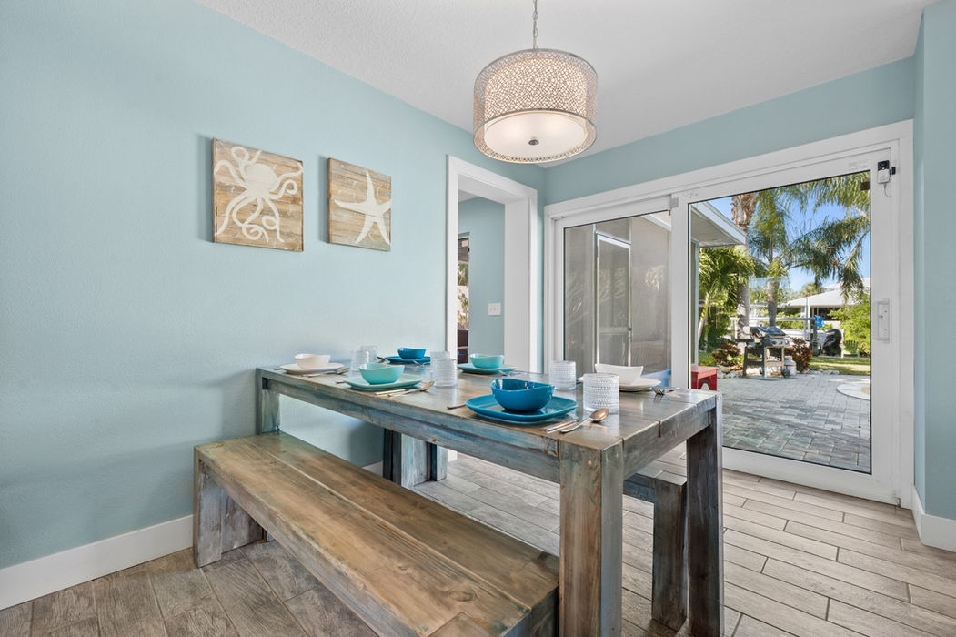 When you enter the main area of the home you will be greeted by the open concept floor plan featuring a wall of windows in the living room with a gorgeous view of all that the backyard has to offer. There is a bonus sunroom off the living room that also provides a great view. You will fall in love with the colorful coastal feel and plank tile floors throughout, including the large screened lanai for indoor/outdoor living.
