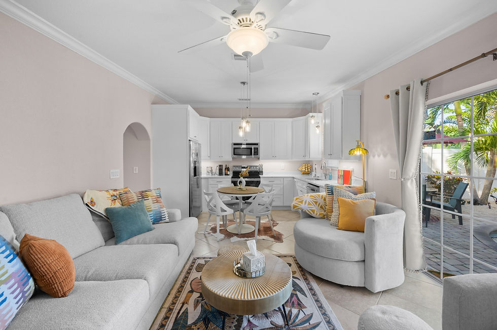Step inside and you’ll be greeted by a bright, open living area with super-comfy oversized furniture. It's the perfect spot to kick back and relax after a day at the beach. The fully updated kitchen, fresh interiors, and all-new furnishings create a relaxing, modern island vibe you’ll love coming home to.