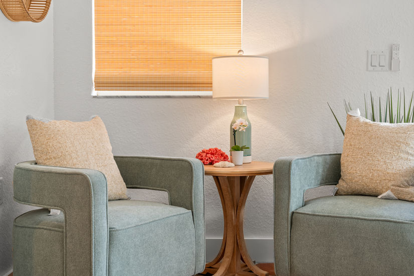 As you step onto the Island Garden Villas property, you’ll be greeted by the charm of its botanical courtyard, complete with vibrant tropical plants and a serene fountain. Recently fully renovated, Plumeria Villa (formerly Hibiscus Villa) now features a bright and clean mid-century modern interior design, thoughtfully updated while retaining its original Florida character. Nestled in lush tropical surroundings, Plumeria Villa offers a serene and enchanting escape just steps from the beach.