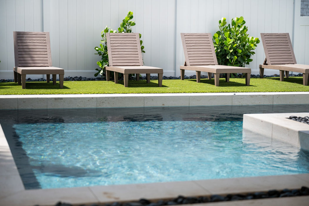 Private turf yard with sparkling heated pool